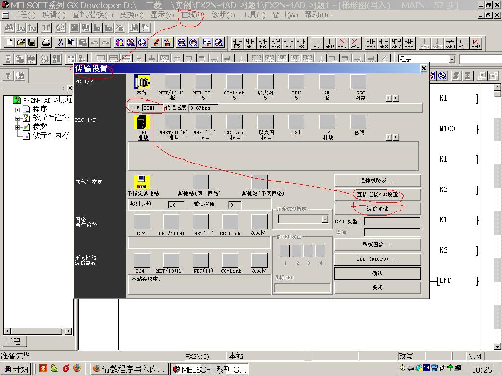 在GX Developer做了一小段程序,想寫入PLC(FX1S)詳見圖片