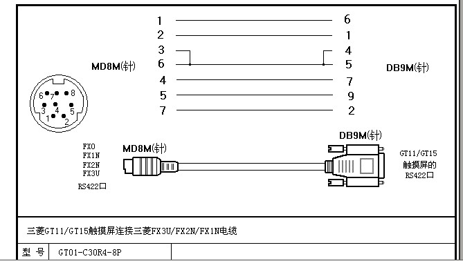 三菱GT系列的觸摸屏和三菱FX系列的PLC的通訊線自己怎么做啊            ,9個針孔怎么定義才可以通訊啊,