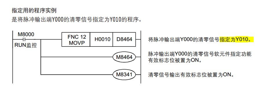這是fx3u定位中的一段程序  請問圖片中黃色部分指定為y10的含義