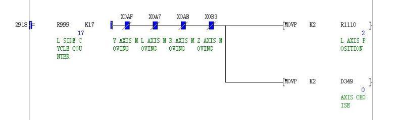 上面的程序中,D349在條件滿足時卻沒有被給值2,而R1110已經正常給值2,此時并沒有其它地方給D349值,什么原因?是PLC運行錯誤嗎?