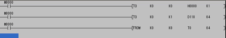 FROM K0 K8 T0 K4(從BFM #8—#12中讀出數(shù)據(jù)傳送到控制器的T0 中去)
