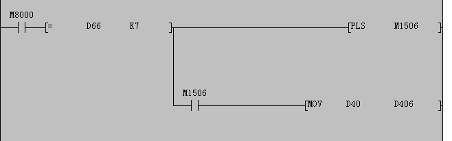 這樣行不,周期頭是D66的變化輸入和與上一周期值比較,最末時(shí)用D67記錄本次周期的值,下一周期如果D66有變化就mov D40到D400Z