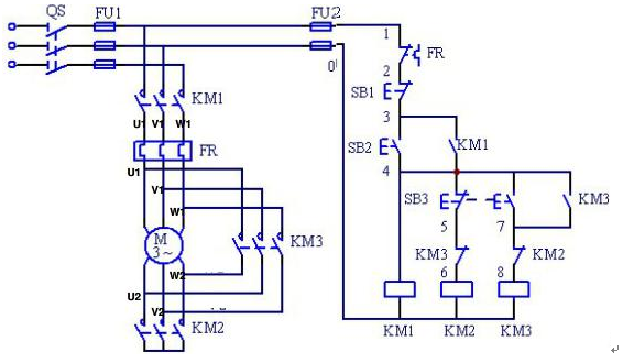 CMP指令實(shí)現(xiàn)下圖電動(dòng)機(jī)星-三角線路的功能。
