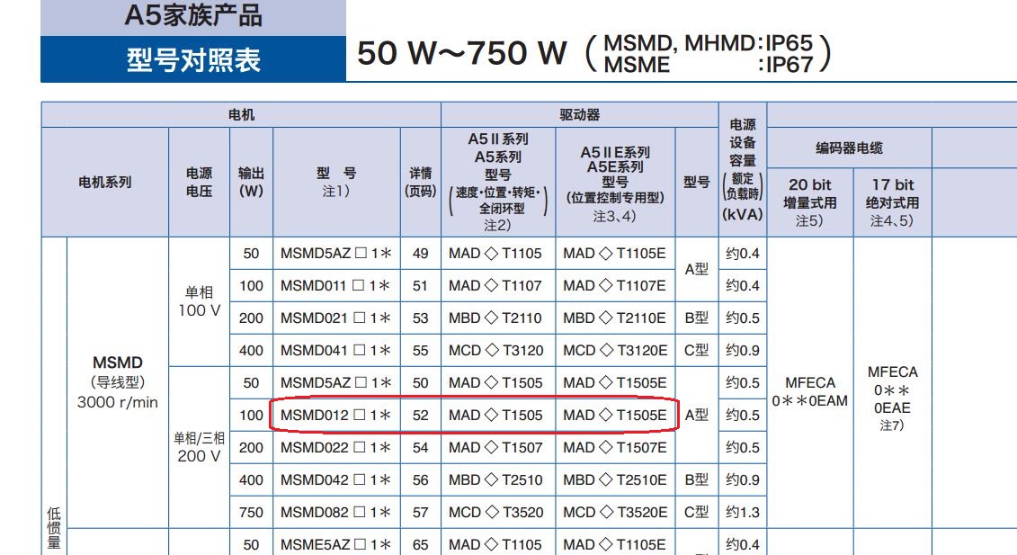 哪位兄弟知道,松下MSMD012G1V 這款電機 對應松下哪種型號的驅動器?