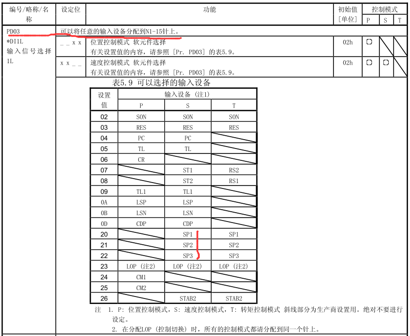 如表,我要的轉速指令值是VC,PD03注釋的卻是15腳的定義,SP1、SP2、SP3何來?速度控制模式下