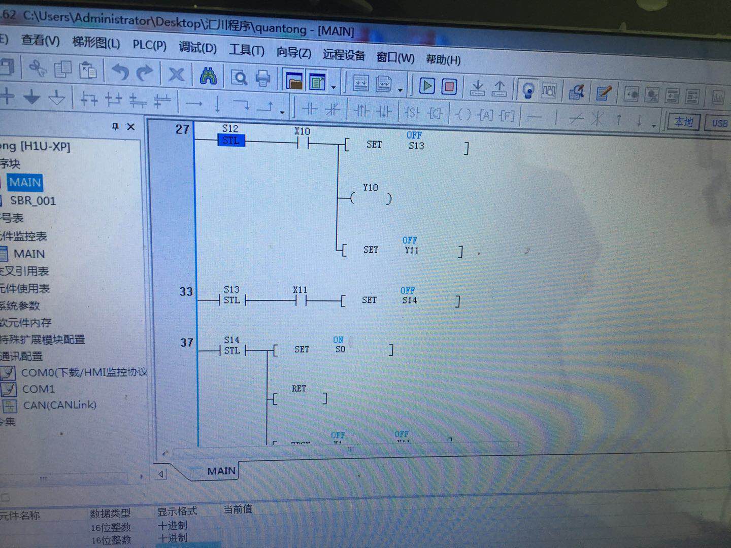 這是匯川H1u-2416MT-XP PLC 。為什么步進指令的觸點都通了?