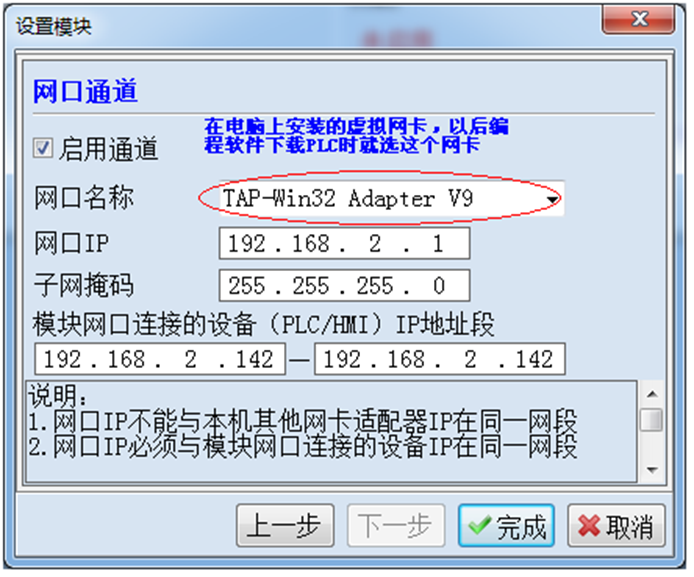 網口IP:該IP只要求和你遠程PLC 的IP一個網段,并且和其同網段的設備不沖突即可。如上圖,和網口連接的遠程PLC地址為192.168.2.142,網口IP隨便設置為該網段的一個IP,和這些PLC不沖突即可。