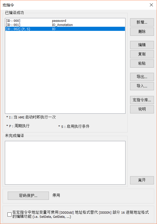 試著寫了,但是觸摸屏型號太低,沒有窗口打開就觸發宏指令選項