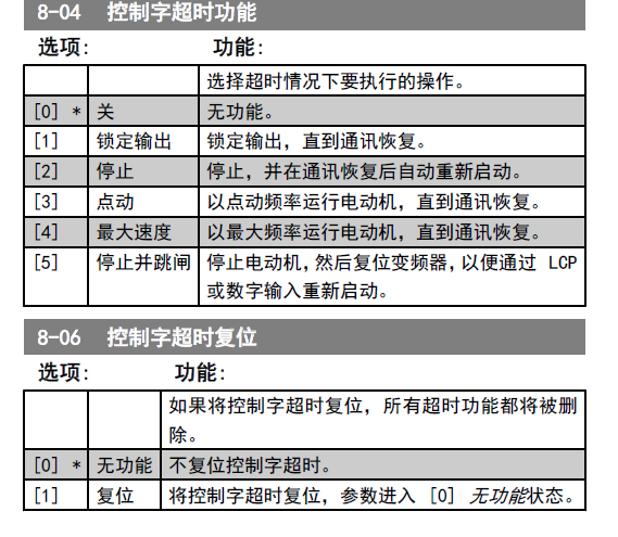 丹佛斯FC 51變頻器用MODBUS RTU通訊做啟動停止 ,頻率給定,發送啟動指令后變頻器啟動了,這個時候把通訊線拔掉,電機就無法停止了  不知道大師們是怎么控制的呢?