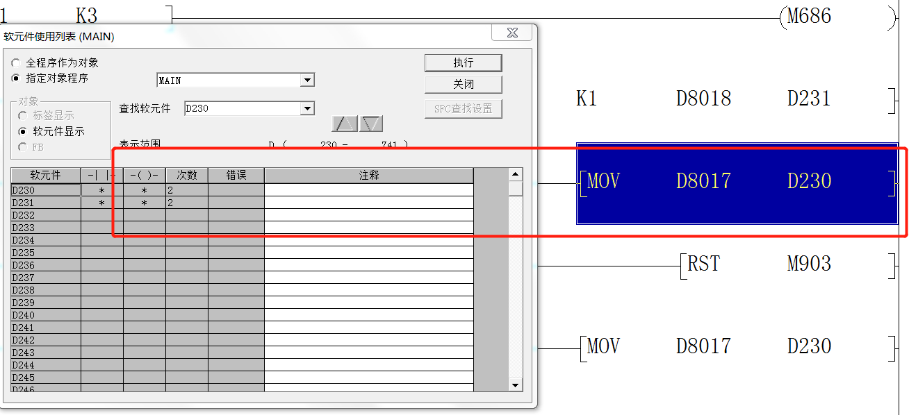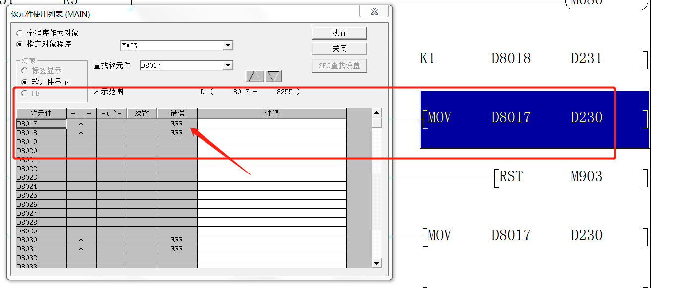 三菱PLC軟元件例表上,有次數(shù),錯誤,是什么意思。請高手解析一下。