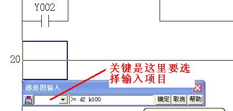 誡請問各位高手:     >=  D2  K100     在程序的左母線上怎么輸入,我就這樣一步一步的輸入結果提示出現指令幫助對話框