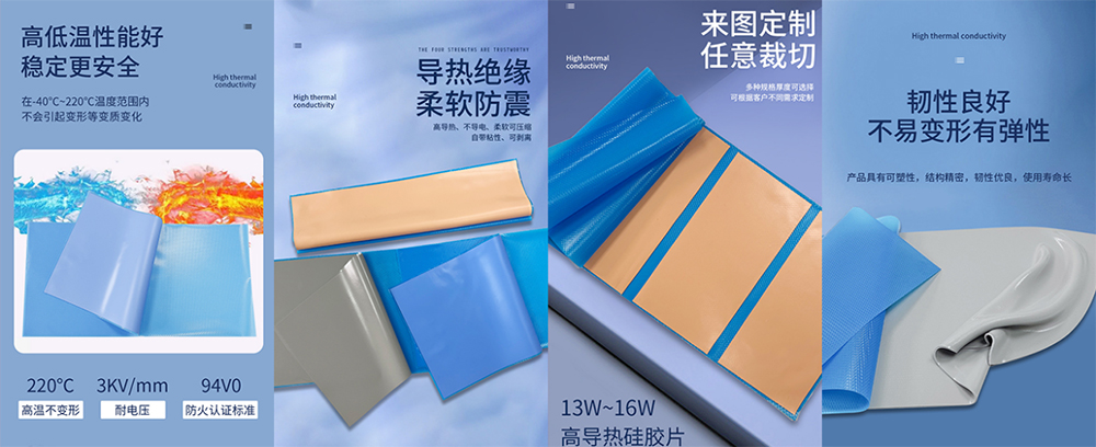 當設計需要兼顧導熱、絕緣、減震與密封時,導熱硅膠片便成為首選。它不僅具備良好的導熱系數(shù)和高等級的耐壓絕緣能力,更擁有卓越的彈性和厚度可選性。其柔軟且可壓縮的特性,能輕松應對較大的裝配公差,廣泛應用于網絡設備、汽車電子、消費電子等領域,為VR設備、顯卡、電源模塊等提供全面保護。