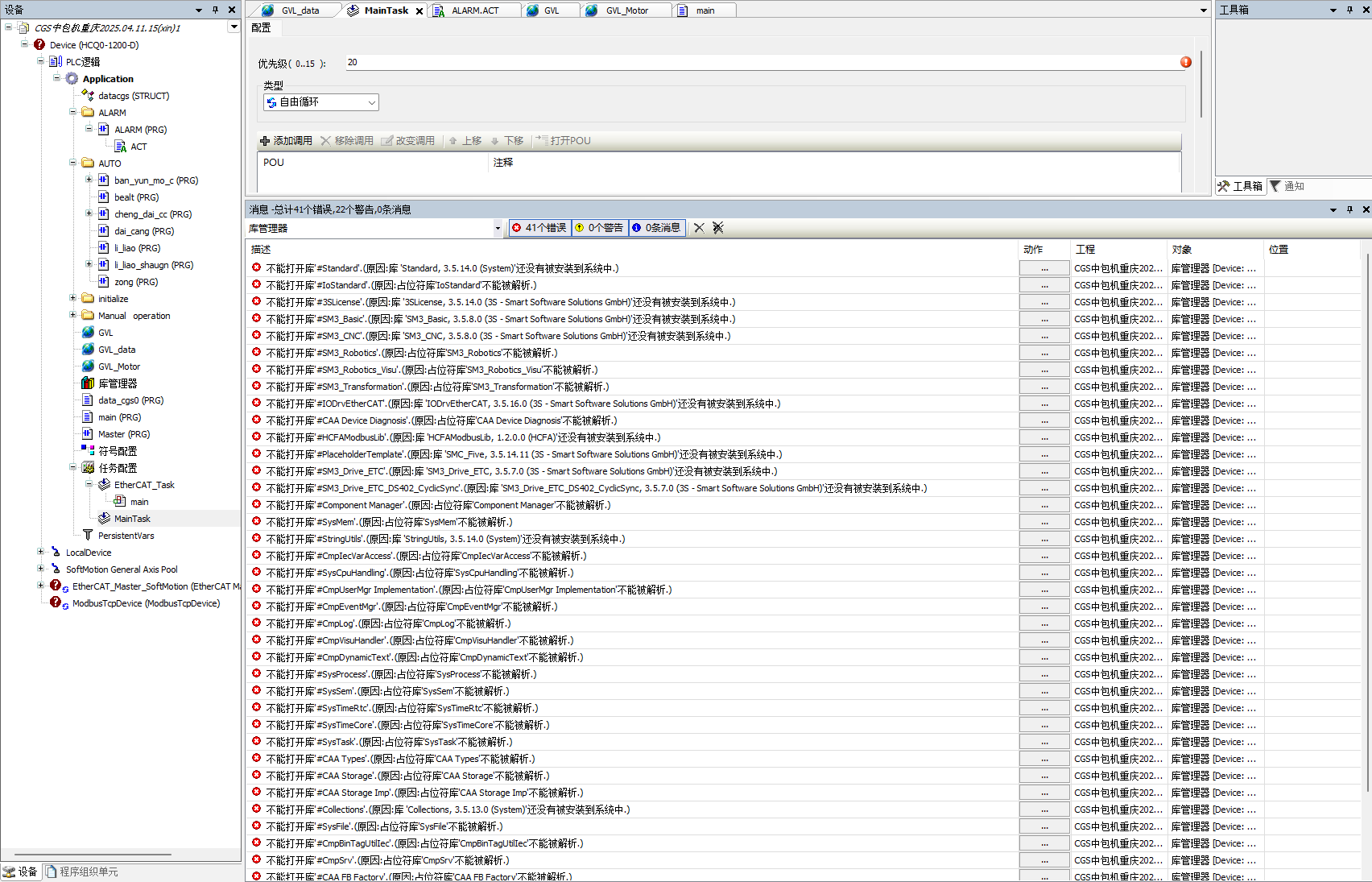 最近接觸到CODESYS,下載最新版本V3.5 SP21 Patch 4安裝,打開(kāi)信捷、禾川品牌CODESYS平臺(tái)的PLC程序,會(huì)出現(xiàn)很多錯(cuò)誤,主要提示庫(kù)未安裝、占位符不能解析等等,請(qǐng)問(wèn)這些問(wèn)題怎么解決??用CODESYS軟件打開(kāi)不同版本的CODESYS程序,也會(huì)出現(xiàn)很多錯(cuò)誤提示