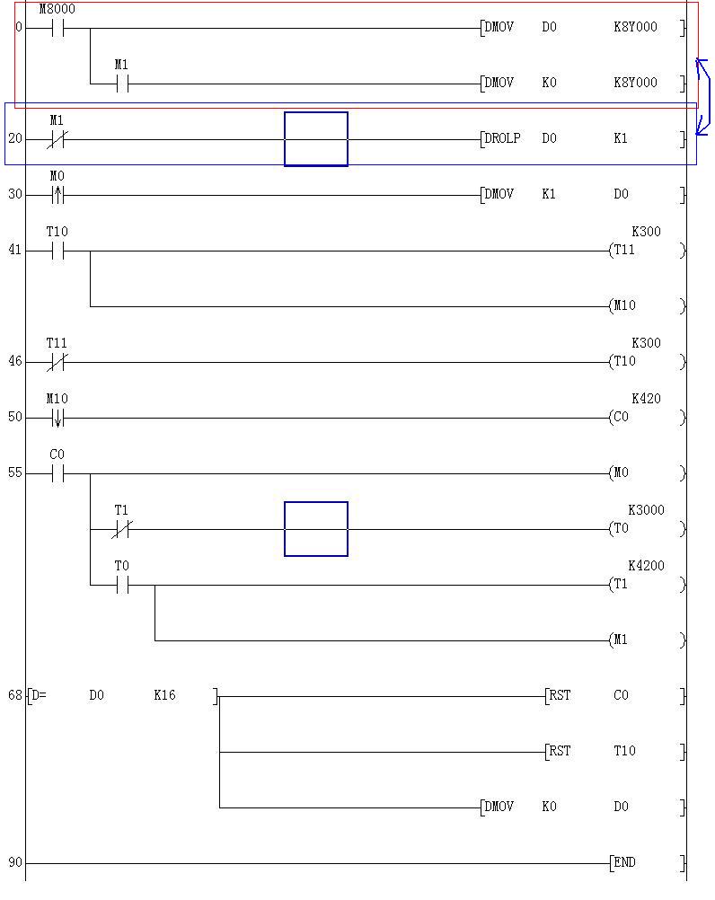 如上圖中只有兩臺(tái)電動(dòng)機(jī)Y0,Y1,程序就很長(zhǎng)了,如果有7,8,10,臺(tái)電機(jī).長(zhǎng)度可想而知了,