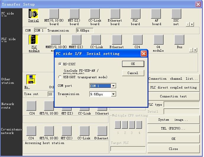 在軟件中與PLC通訊前,檢查通訊設置中通訊方式選擇是否為串口com1(默認)