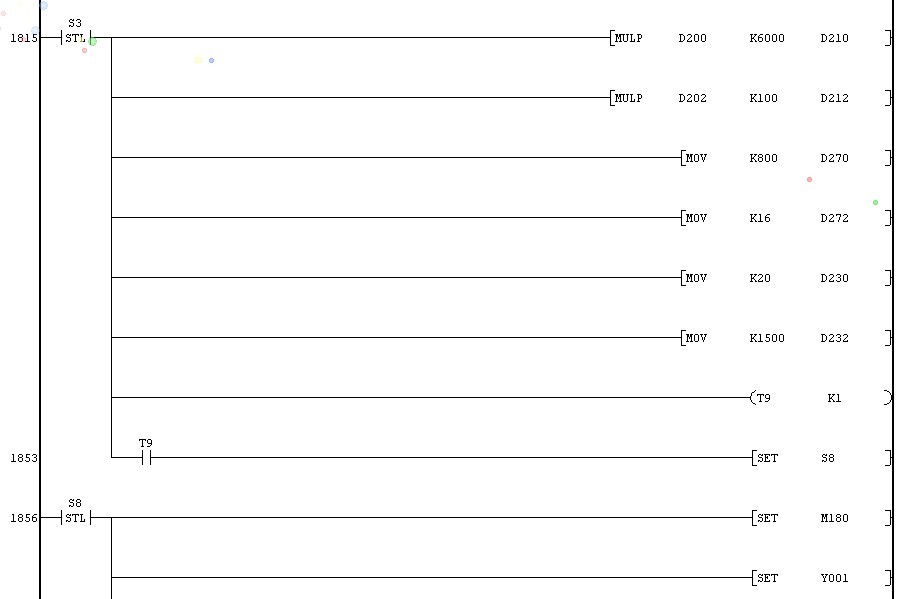 再次謝謝樓上兩位高手,那請麻煩幫我分析分析。在那個步進梯形圖里面那個  MOV  K20  D230  就是每次給那個步進馬達的脈沖,然后到第二張圖,M180就是自動運行狀態下捕捉到X2的脈沖就驅動M58也就是我需要更改的那個步進馬達,然后定位完成復位M8172,然后再等候下一個脈沖捕捉再給它20個脈沖前進一格.直到達到預定的次數D200才停止.在這樣的程序里面我應該如何插?在哪里插 MOV K40 D230   或者MOV K60 D230 進去呢?后面傳上去的是全部程序.