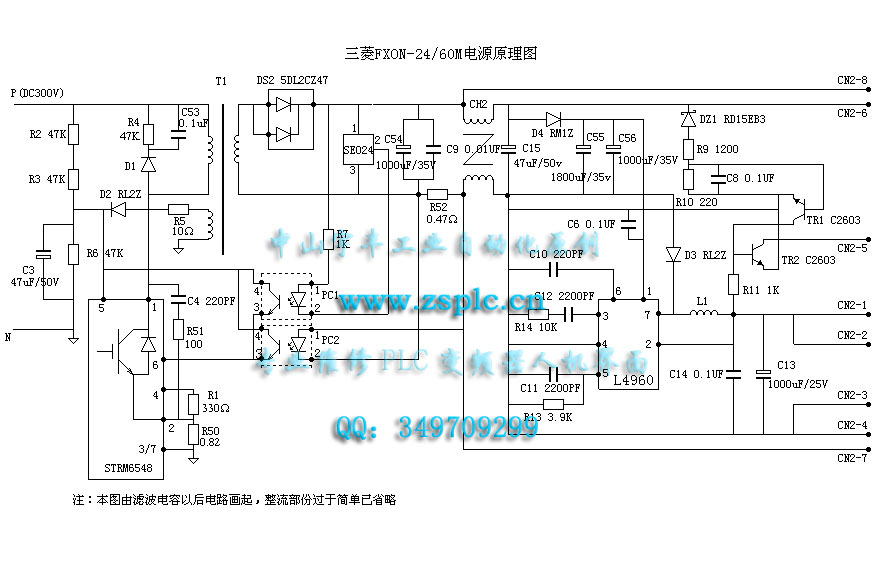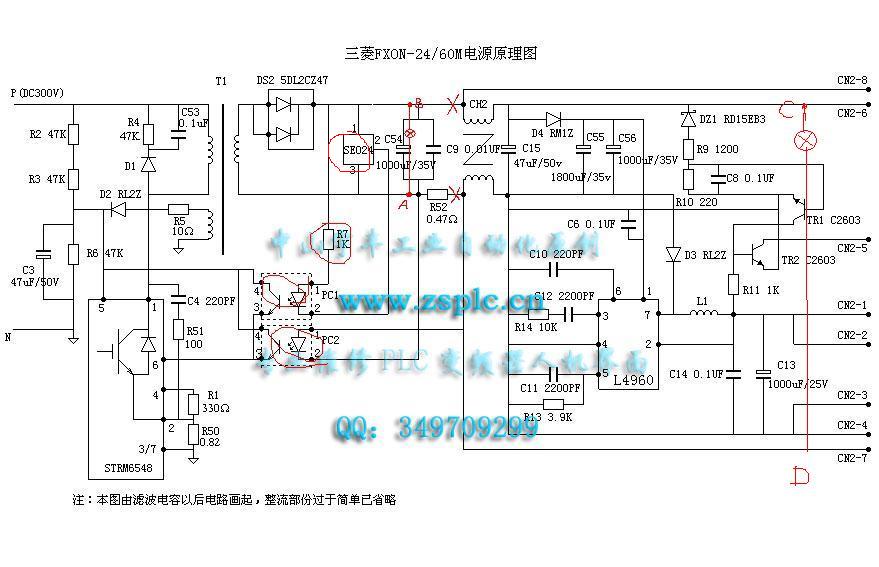 現在補充一下,用外接的確24V電源PLC能正常工作,說明電路損壞不嚴重(接220V時有300V直流輸出)