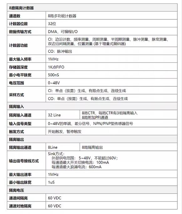PCI總線,8路隔離計數(shù)器模塊,支持帶緩沖采樣;可采集高達(dá)48V的電壓;附加了8路額外的PFI輸入通道;與LabVIEW無縫連接,提供圖形化API函數(shù)。