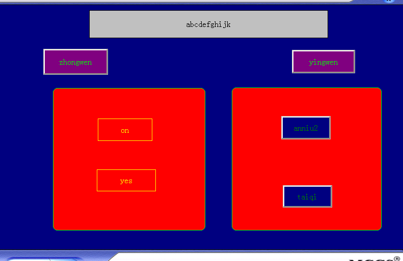 閑著沒事,做了小程序。昆侖通態觸摸屏中英文畫面切換功能。 上面圖片是仿真效果。
