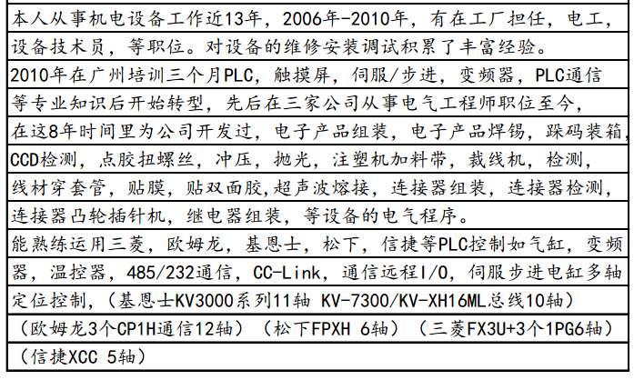 本人常住東莞承接東莞,深圳,惠州等區域的電氣程序設計。