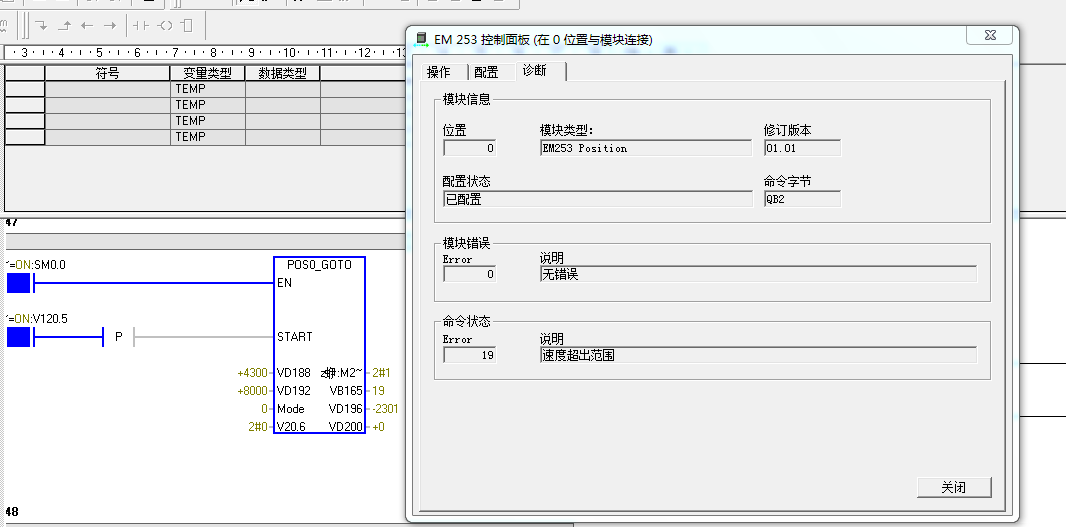 小弟最近做一項(xiàng)目西門子200,em253模塊在使用的過程中不定期會報(bào)警,報(bào)警說明是;速度超出范圍,但是我把速度調(diào)到很低2000多還是偶爾會報(bào)警,不知怎回事,打電話西門子客服,說是什么把所有程序刪了只寫這段程序再試,又說是什么電腦不是正版系統(tǒng)什么的,搞的我真的無話可說,請高手指點(diǎn)一下,謝謝
