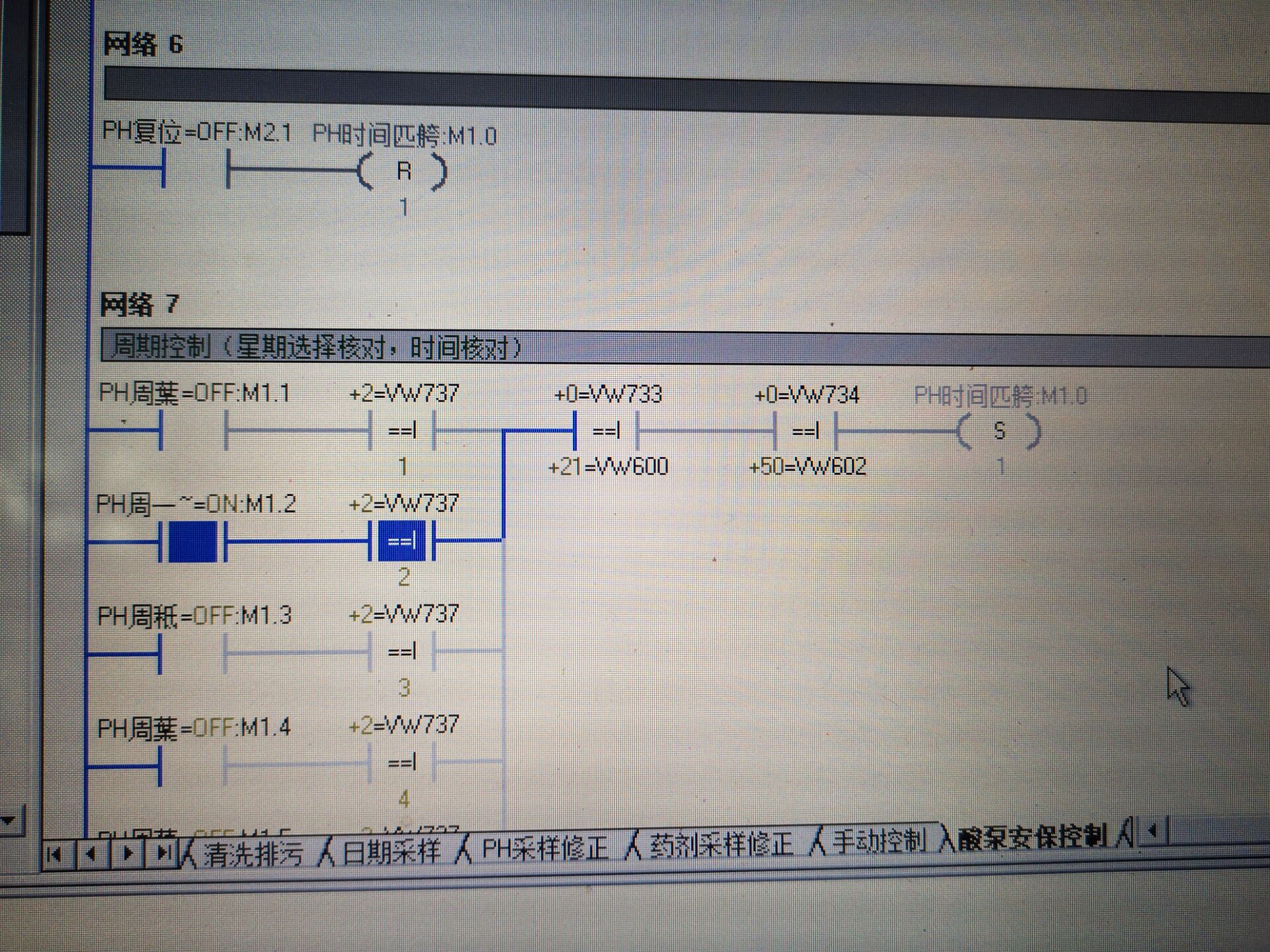 見圖,在一段時控程序測試發現采樣的時間(星期、小時、分鐘)正常;在比較時候只有星期正常,小時和分鐘都為0,查了也沒地址沖突。