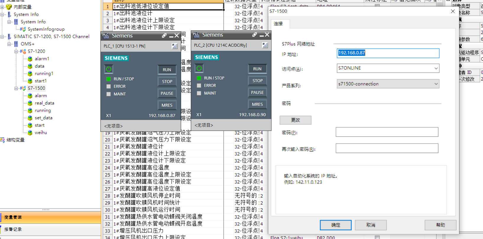 各位大神,在博圖里邊有1個1500和1200PLC,網址都在同一網段,相應的WINCC上位機上地址和PLC設置一致,在仿真時只有一個1500PLC的仿真通訊正常,另一個1200的仿真不通,這個怎么解決