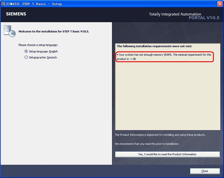 STEP7 BASIC V10.5軟件要求系統內存1.0G以上。今天試安裝時居然沒有成功!