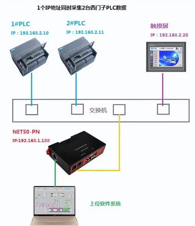 通過1個IP地址同時采集2臺西門子S7200 Smart的數據