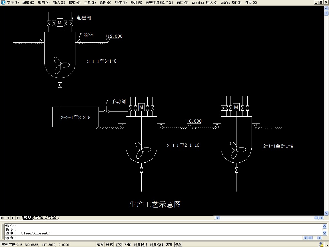 4、三層共8只調漆釜,調漆釜編號3-1-1到3-1-8,都要求稱重,重量要能在現場顯示,采用一機一缸變頻攪拌方式,4種自動配料。