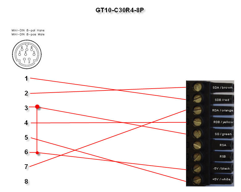 好像就是這個接法,GT1030的編程電纜在手冊上的型號好像是GT10-C30R2-6P,而GT1050和Q系列通訊電纜也是這個型號,巧合的是Q系列的編程口是232的,所以我估計這兩條電纜是通用的。只是推斷。