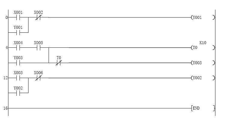 若X004與X005均接通后則氣缸Y003得電吸合并延時(shí)1秒后斷開,否則Y003不吸合