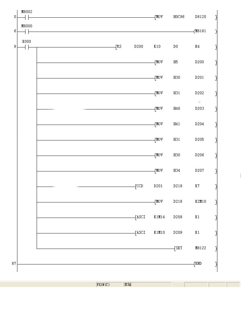 PLC:FX2N(國產(chǎn),485通信為兩線) 變頻器:E740