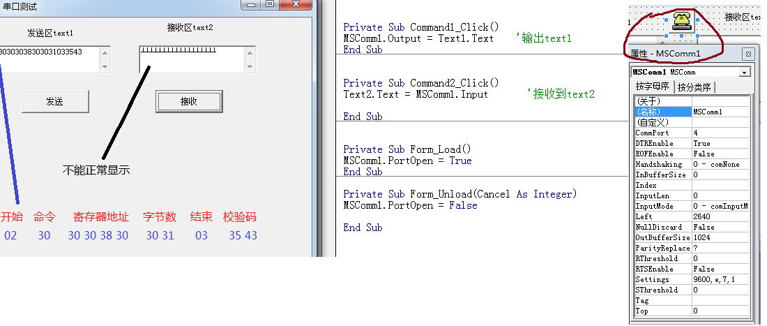 與VB通信時接收區亂碼。如圖,求大俠指點。