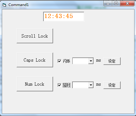 鍵盤指示燈Caps lock、Num lock、Scroll lock測試程序,通過點擊窗體中的按鈕來改變指示燈的狀態。