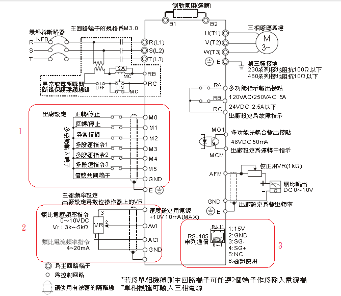 看看變頻器的接線端子說明就出來了 |