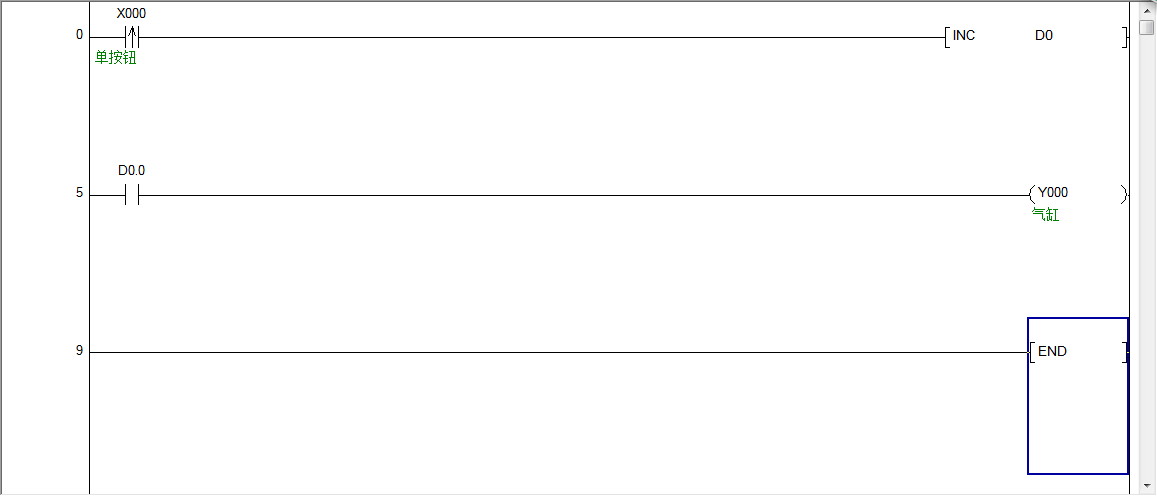 手動時無論原來氣缸是什么狀態(伸出縮回未知),單按鈕按下都需要反向動作,比如原來是氣缸伸出,那按一下變成縮回,如果原來是縮回的,按一下變成伸出。并且單按鈕循環反向操作。
