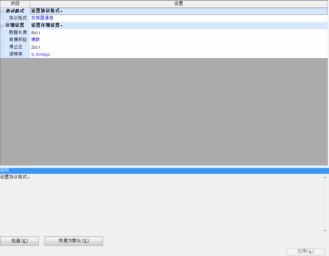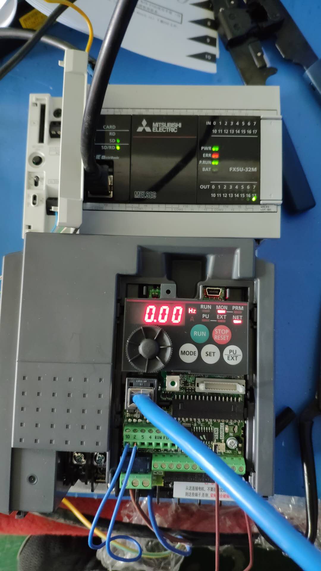 請(qǐng)問各位大師 ,我用FX5U的PLC和FR-E740變頻器485通訊,為什么設(shè)定參數(shù)之后始終通訊上不呢,PLC的SD燈為閃而RD燈沒有反應(yīng),PLC報(bào)通訊錯(cuò)誤,麻煩各位大師出來給指導(dǎo)一下,在此謝過各位大師了!