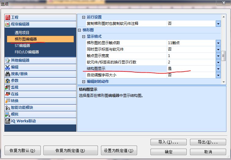 引用引用第1樓cvlsam于2019-12-24 08:43發(fā)表的 :工具--->>選項--->>程序編輯器--->>梯形圖編輯器下: 確保顯示格式--->>>結(jié)構(gòu)圖顯示為是. [attachment=239844].......