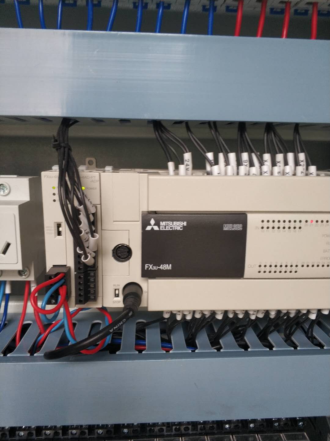 現在用FX3U做了系統,擴展了一個FX-422-BD的口用來連接威綸觸摸屏,編程口連接一個物聯通訊模塊,一個485APD-MB模塊用來和耀華的C801做485通訊。
