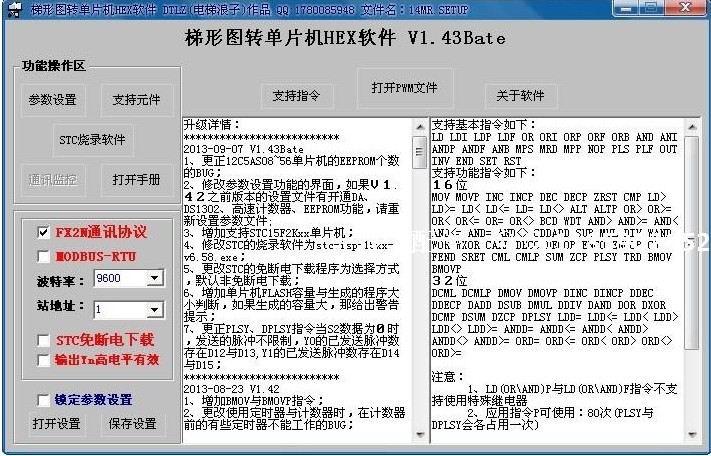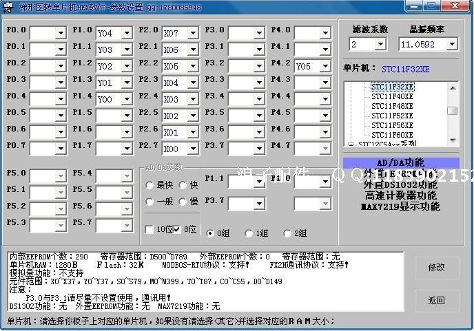 2、修改參數設置功能的界面,如果V1.42之前版本的設置文件有開通DA、DS1302、高速計數器、EEPROM功能,請重新設置參數文件;