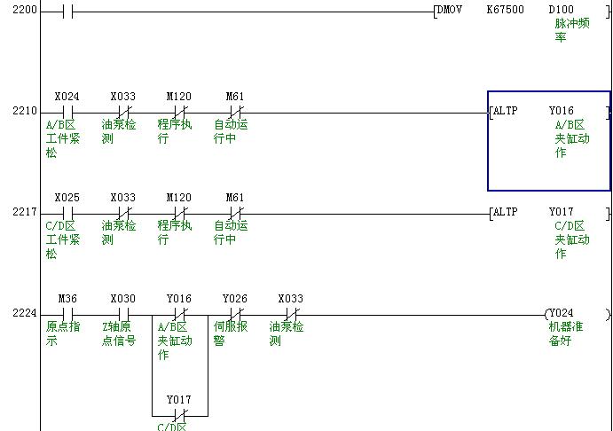 當X000交替地OFF變ON時可以理論上可以實現(xiàn)單按鈕啟停,但由于PLC的掃描周期很快,導致不穩(wěn)定,有誤動,實用性欠佳。下面這個相對較穩(wěn)定: LD X000 PLS M0 LD M0 ANI Y000 LDI M0 AND Y000 ORB OUT Y000 END |