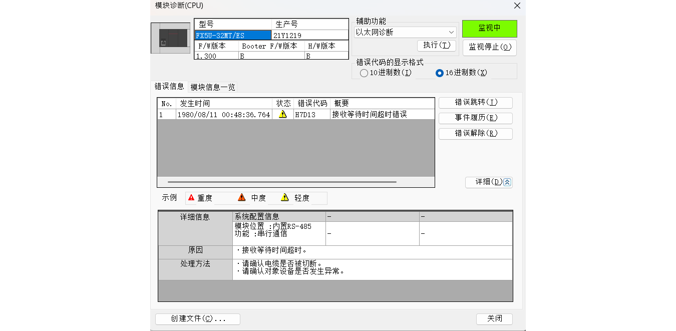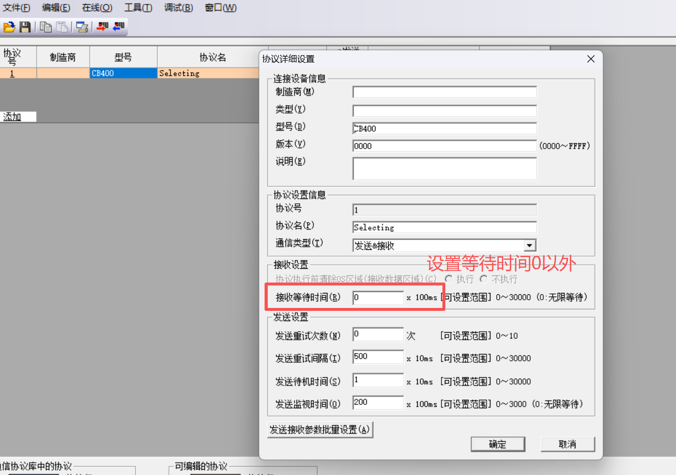 通信協議參數設置有問題