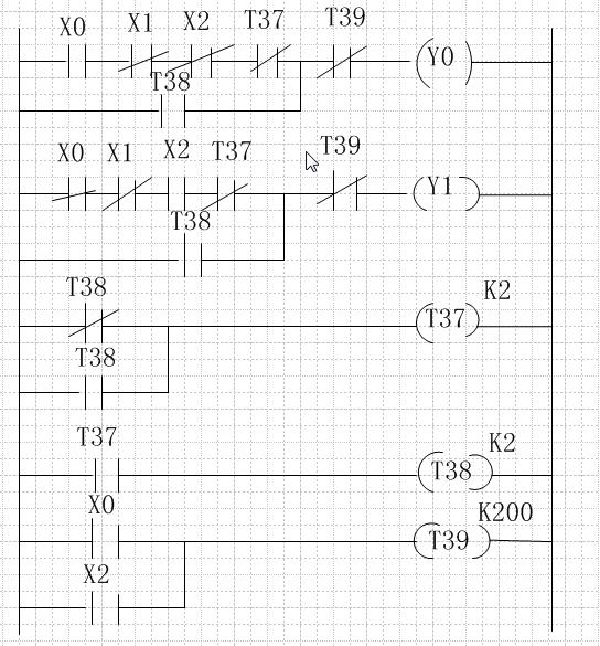 2、我分析圖中是0.1秒閃亮啊,假設閉合X0,T38通電,延時0.1秒后燈亮,T37通電延時開始,0.1秒后T37動斷觸點斷開,T38斷電,燈滅,隨即,t38又通電循環(huán)
