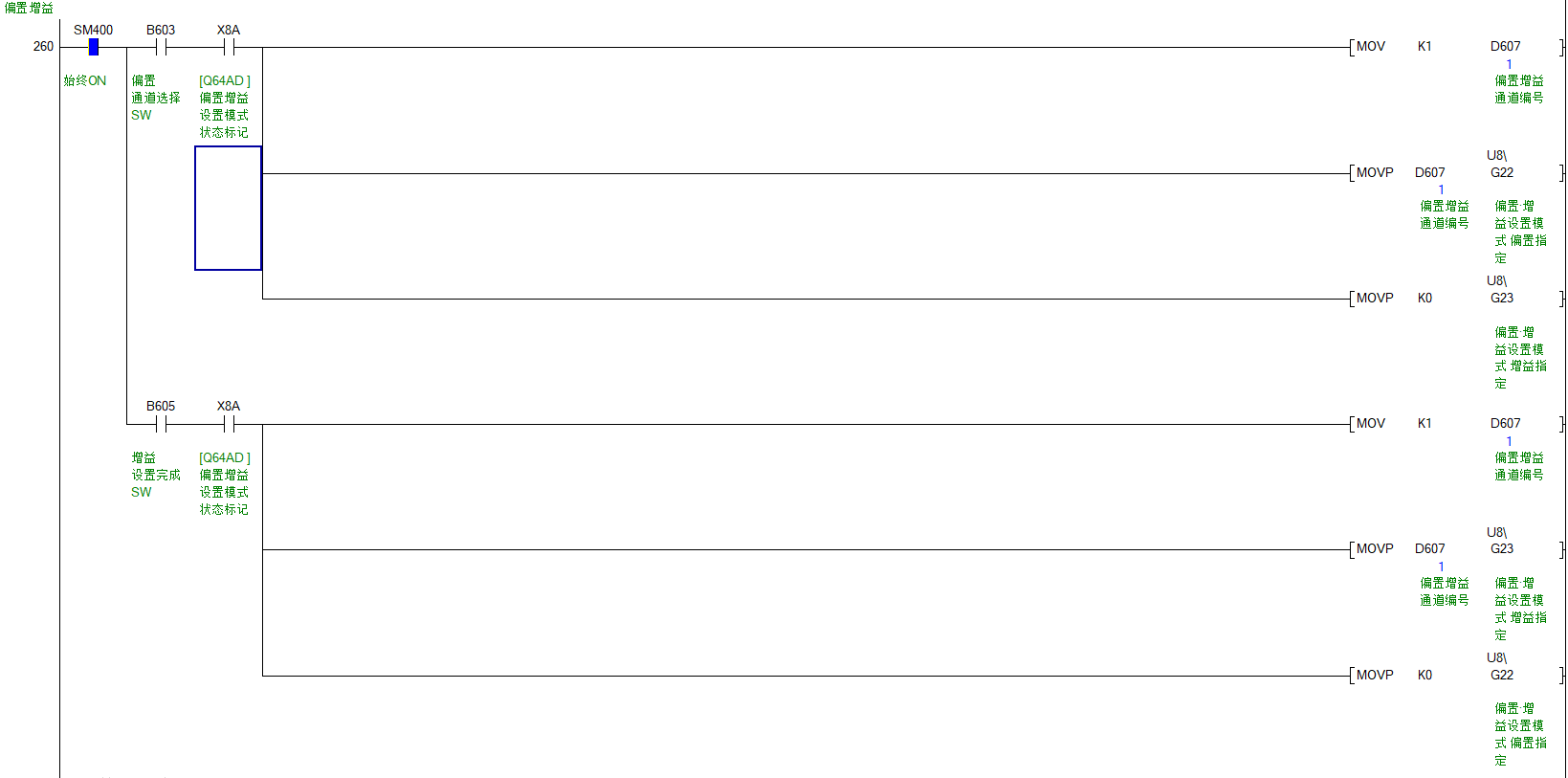 三菱Q系列Q64AD 調整偏置增益程序
