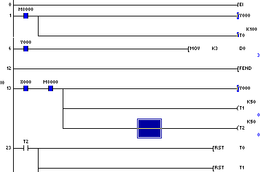 如附件程序,為什麼進入中斷後,計時器沒有計時?????fx1s-14mrplc...