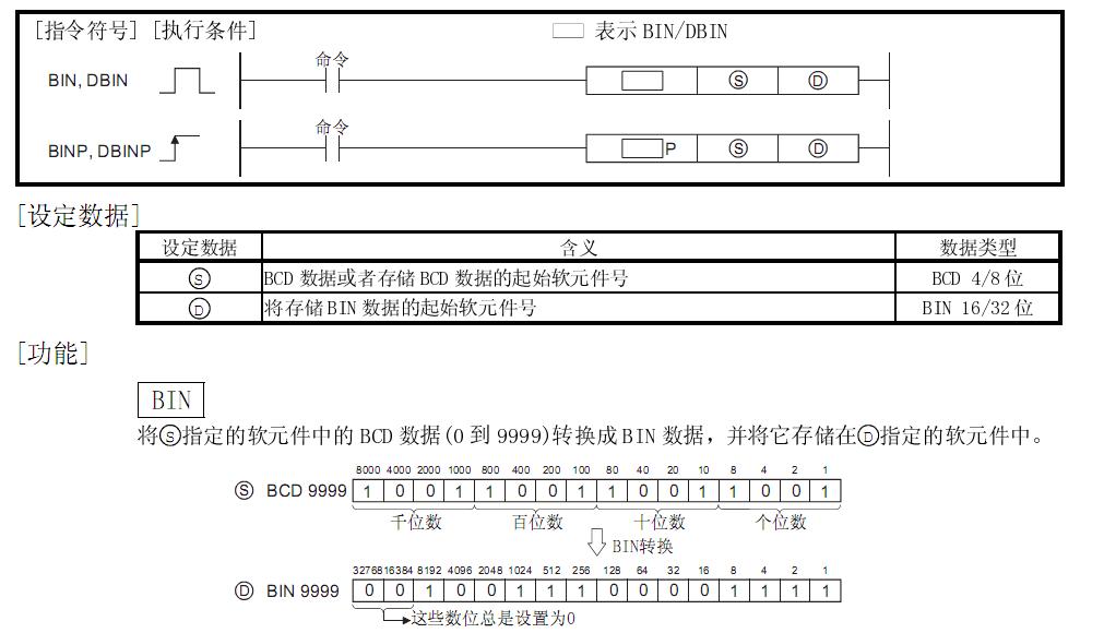 從BCD 4位和8位數據到BIN數據的轉換(BIN,BINP,DBIN與DBINP)