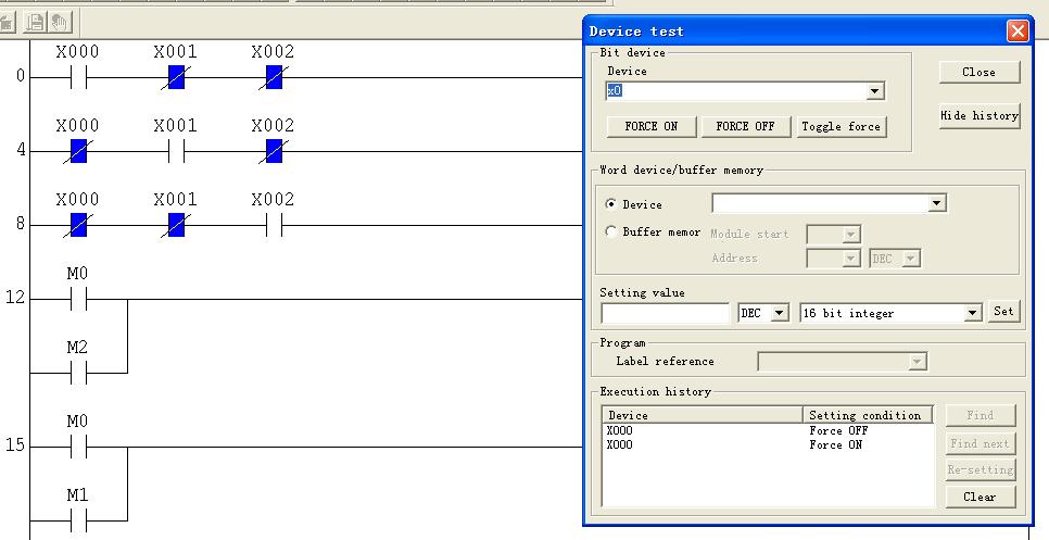 三菱的PLC在GX中不能強(qiáng)制X的(注意輸入沒有接線的情況下可以強(qiáng)制),可以用短線直連COM端和需要檢測的輸入點(diǎn),看有沒信號來判斷輸入點(diǎn)有沒問題,沒問題那就是現(xiàn)場接線問題