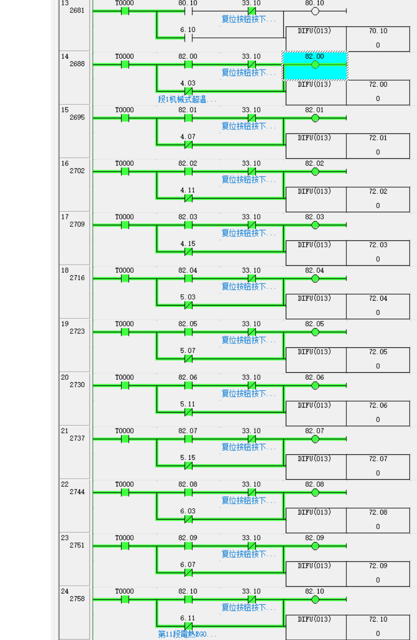 該程序段13第3029步中CMP(020)  82  #0 模擬時的值為2047,沒有搞明白這2047怎么來的,程序中沒有搜索到與之關聯(lián)的地方,導致87.02一直輸出。請大家指點!謝謝!