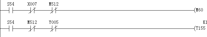 我這里面的Y5是Y0發脈沖的方向信號,M512是標志位,當M512不通的時候,Y5是通的,當M512是通的時候,Y5是不通的,現在奇怪的是前一個狀態不計時,到了后一個狀態計時了(即當M512導通時,Y5不通,S45是常通的)